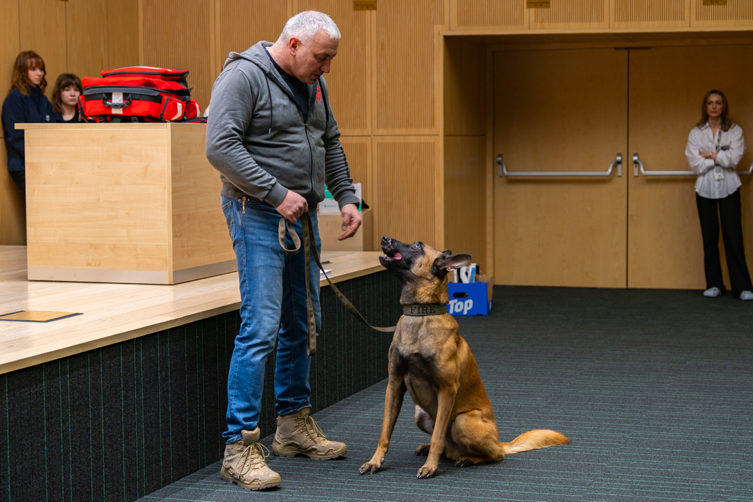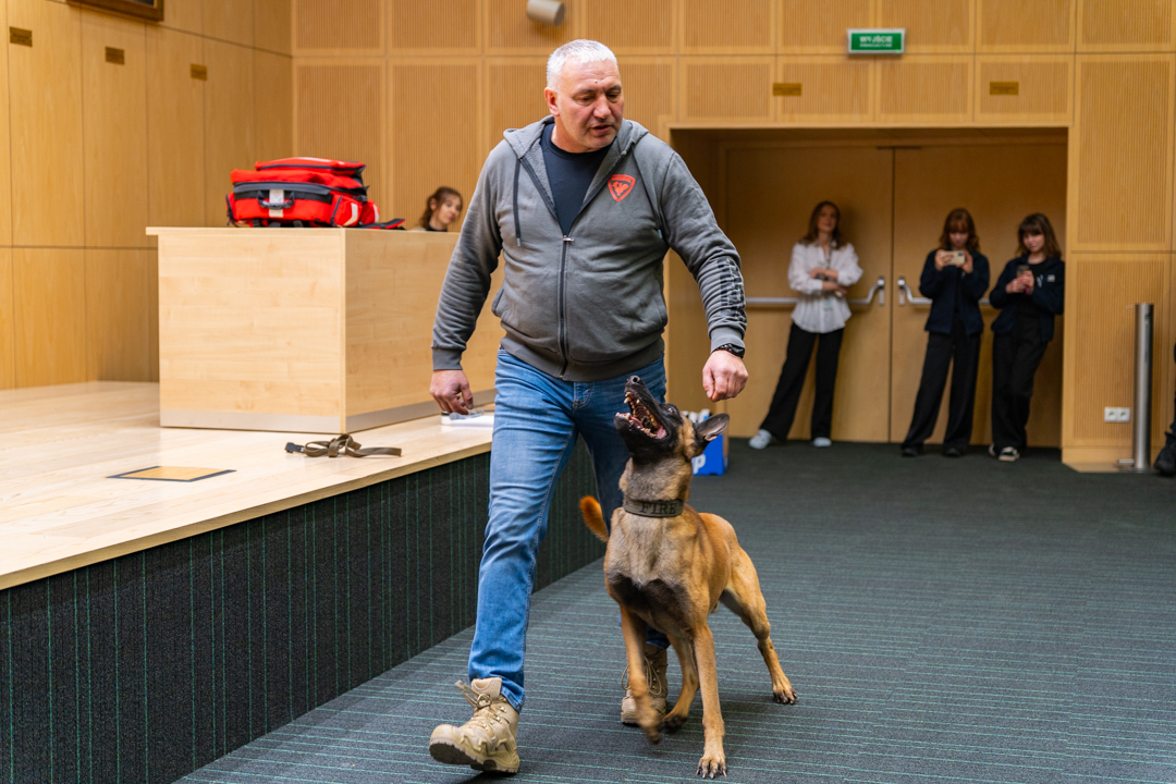 Ogromnym hitem spotkania okazały się psy służbowe, które przyprowadził mgr Jacek Lewkowicz, wykładowca kierunku Kryminalistyka na Uniwersytecie Komisji Edukacji Narodowej. Czworonożni funkcjonariusze szybko skradli serca dzieci, udowadniając, że praca w służbach mundurowych może być fascynująca i bardzo przyjemna!