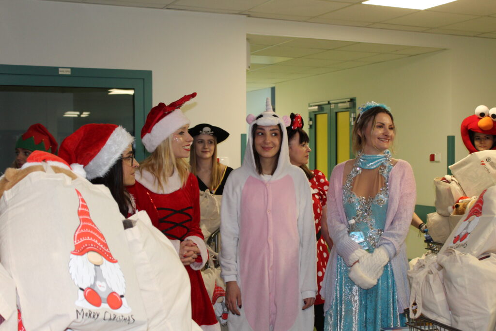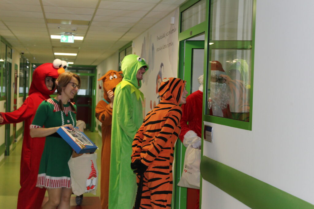 Najbardziej wyczekiwanym momentem Mikołajek było spotkanie ze Świętym Mikołajem i jego pomocnikami. W tym roku towarzyszyły mu aniołki, diabełki oraz postacie znane z bajek, tworząc ciepły i radosny orszak. Możliwość wspólnego zdjęcia, przybicia piątki czy krótkiej rozmowy z Mikołajem była dla wielu małych pacjentów niezapomnianym przeżyciem, a uśmiechy na ich twarzach najlepiej oddawały znaczenie takich chwil.